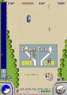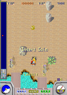 Luckily, as Charles guessed, Action Figher seems to work fine on MAME, without the graphics issues he mentioned on his site. The game appears to be something of a Spy Hunter ripoff, letting you pilot various vehicles, chasing down bad guys.
